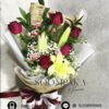 ช่อยาวโทนแดงน้ำตาล กุหลาบแดงพันธุ์ Holland เกรดพรีเมี่ยมแต่งด้วยน้องหมี Hug Me สีน้ำตาลถือหัวใจแดงห่อสวยหรูหราอลังการมอบให้คนรักในทุกๆโอกาส