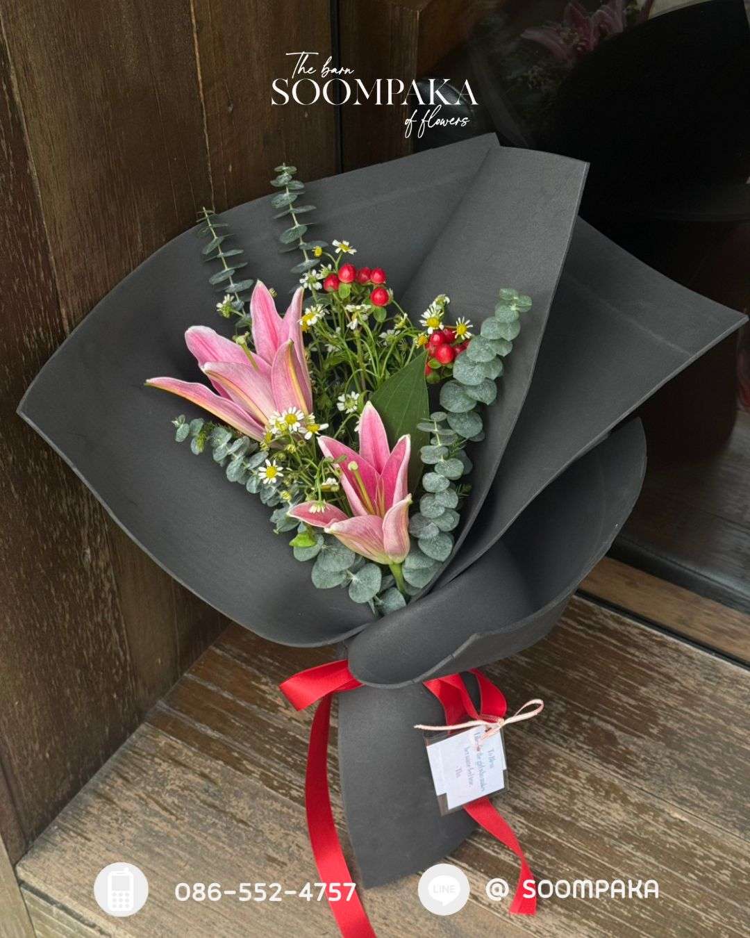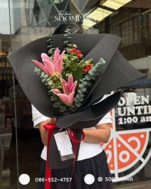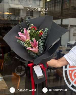 ช่อลิลลี่ห่อด้วยแผ่นโฟม EVA สีดำ