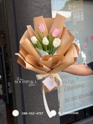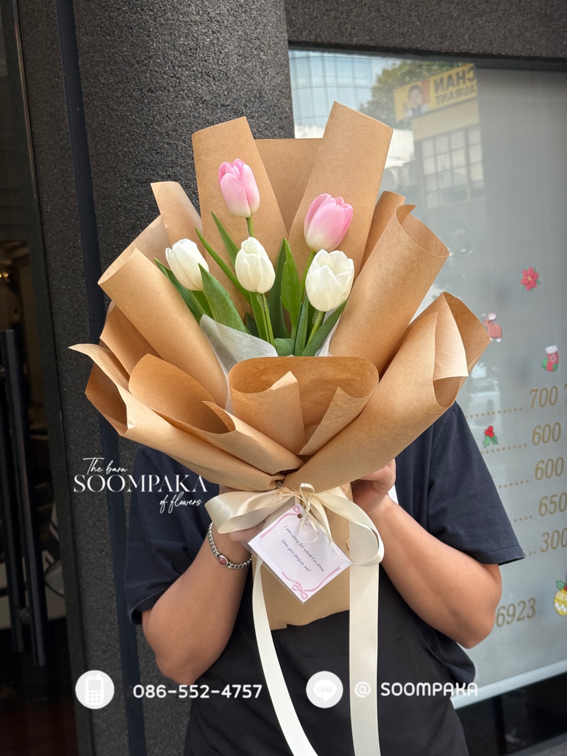 ช่อดอกทิวลิป 5 ดอก จัดผสม 2 สี โทนเรียบสวยดูอบอุ่น