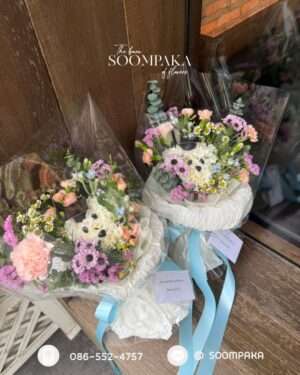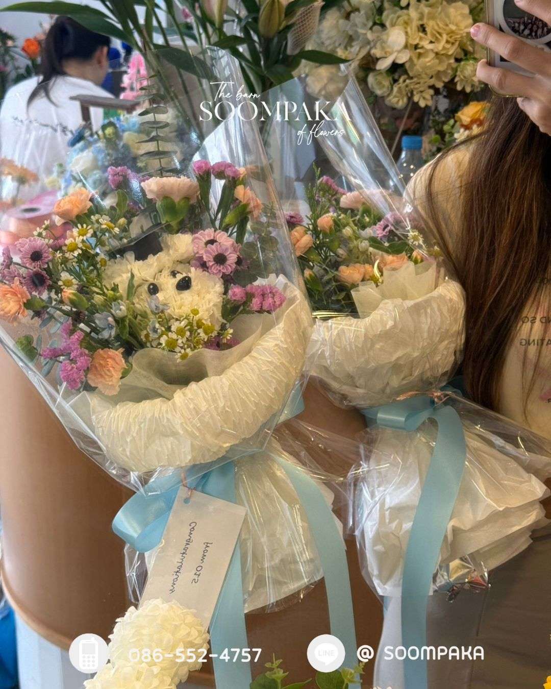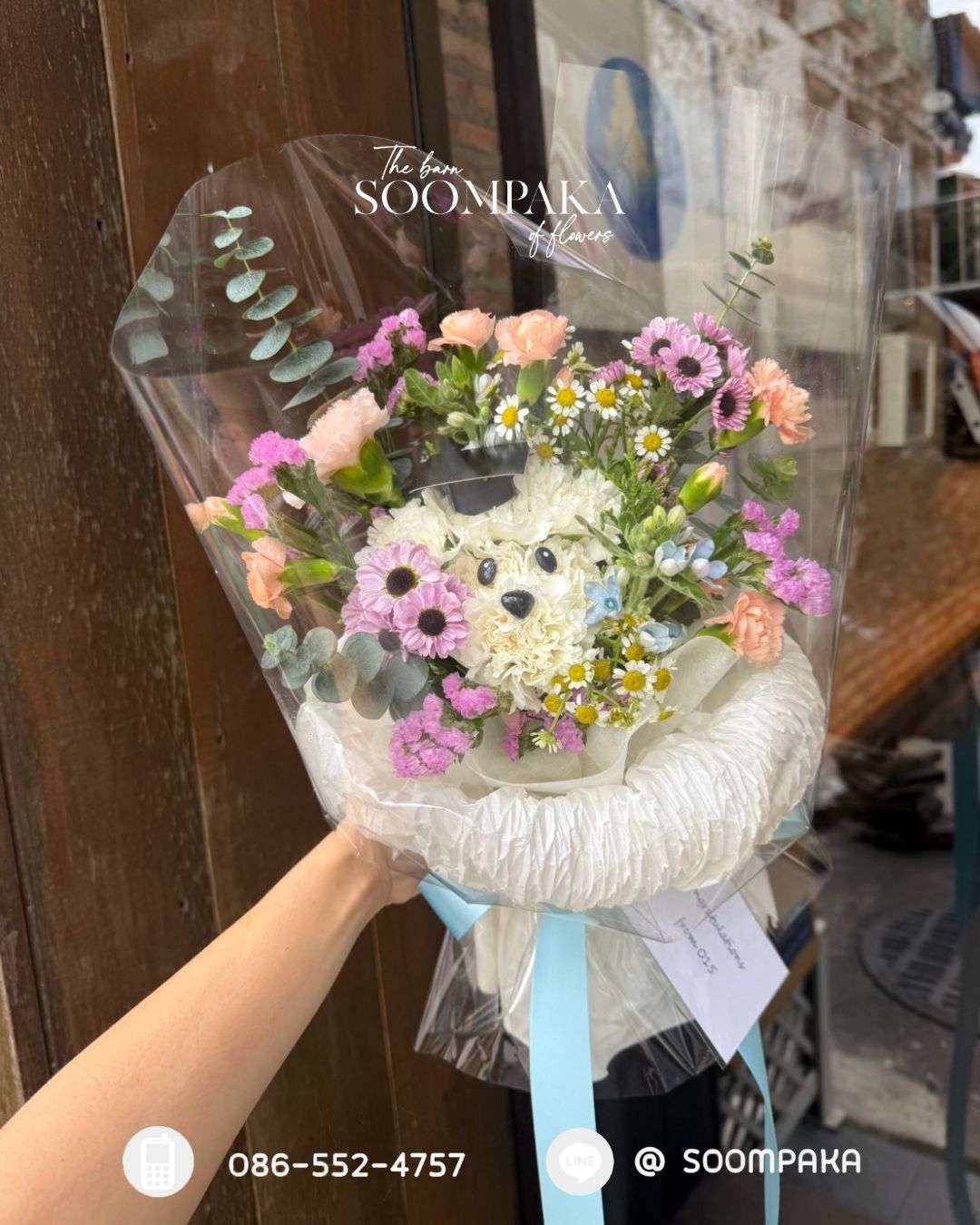 ช่อดอกคาร์เนชั่น 6 ดอก รูปหน้าน้องหมา