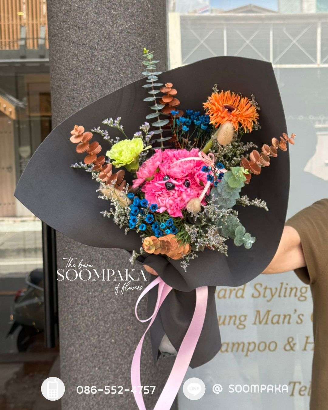 ช่อโฟมสีดำดอกคาร์เนชั่น รูปหน้าน้องหมา