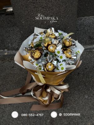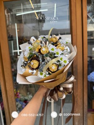 ช่อช็อกโกแลต Ferrero Rocher 9 ลูก แซมดอกไม้ประดิษฐ์ เพิ่มความหวานและความน่ารักให้กับช่อ