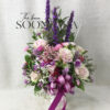 แจกันโทนขาวน้ำเงิน กุหลาบจับคู่อย่างลงตัว (Contrast) กับไลเซนทรัสสีม่วงเข้ม สีสรรแปลกตาสแตติสน้ำเงินตัดกับกุหลาบขาว กุหลาบขาว จัดคู่กับสิ่งใดสื่อถึงความรักและความปรารถนาซ่อนอยู่ ตกแต่งแซมดอกไม้แซมเล็กๆสวยงามลงตัว ส่วนประกอบ แจกันเซรามิคสีขาว กุหลาบขาว8ด