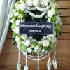พวงหรีดดอกไม้สดโทนขาวเขียว ทรงกลม ขนาด 100-120ซม.