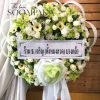 พวงหรีดดอกไม้สดโทนขาวฟ้า ทรงกลม ขนาด70-80ซม.